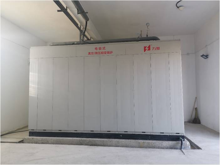 電極相變鍋爐是5001拉斯維加斯獨創(chuàng)的一種在鍋爐內(nèi)部實現(xiàn)相變換熱的電極鍋爐。它主要由電極筒、介質(zhì)筒、換熱器以及控制裝置組成。三相電極固定在電極筒內(nèi),浸在具有一定電導(dǎo)率的熱媒水中,三相電極通電后直接加熱熱媒水,在電流的作用下,熱媒水被迅速加熱汽化變成熱媒蒸汽,蒸汽上升到換熱器管外,將熱量傳遞給換熱器管內(nèi)的冷水,對外輸出熱水或蒸汽。而熱媒蒸汽凝結(jié)成水滴回到熱媒水中重新被加熱汽化,完成整個循環(huán)。在機組運行中,熱媒水封閉在筒體內(nèi)不斷地汽化-冷凝-汽化往復(fù)循環(huán),實現(xiàn)電能向熱能的轉(zhuǎn)換。